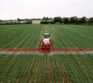 与拖拉机配套工作的牵引式喷药机,喷洒农药防治病虫害。